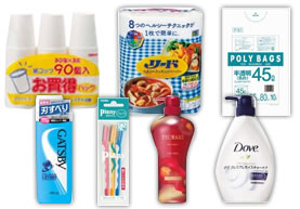 ペーパータオルやティッシュペーパー、高級割り箸などを特別価格で
